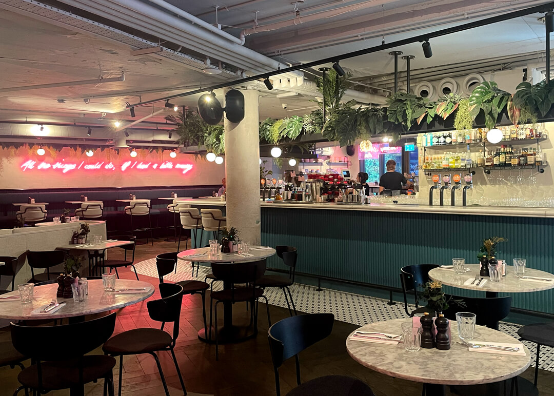 Grind is a vibrant all-day café-bar. Grind now has 14 locations across London; its first location was Shoreditch Grind, which opened in 2011 on Old Street roundabout in Shoreditch. It was initially a coffee shop that transformed into a “café by day and cocktail bar by night.