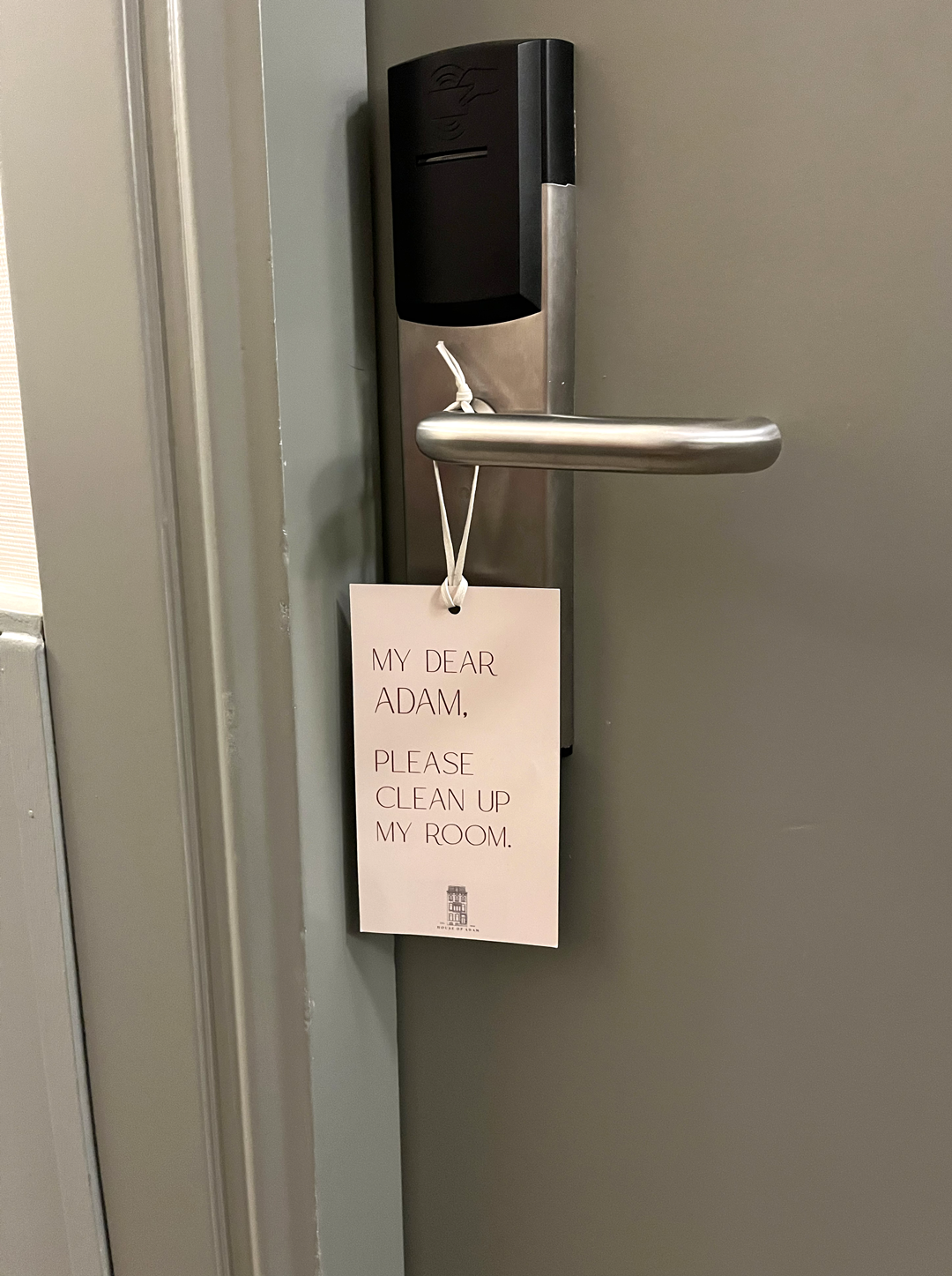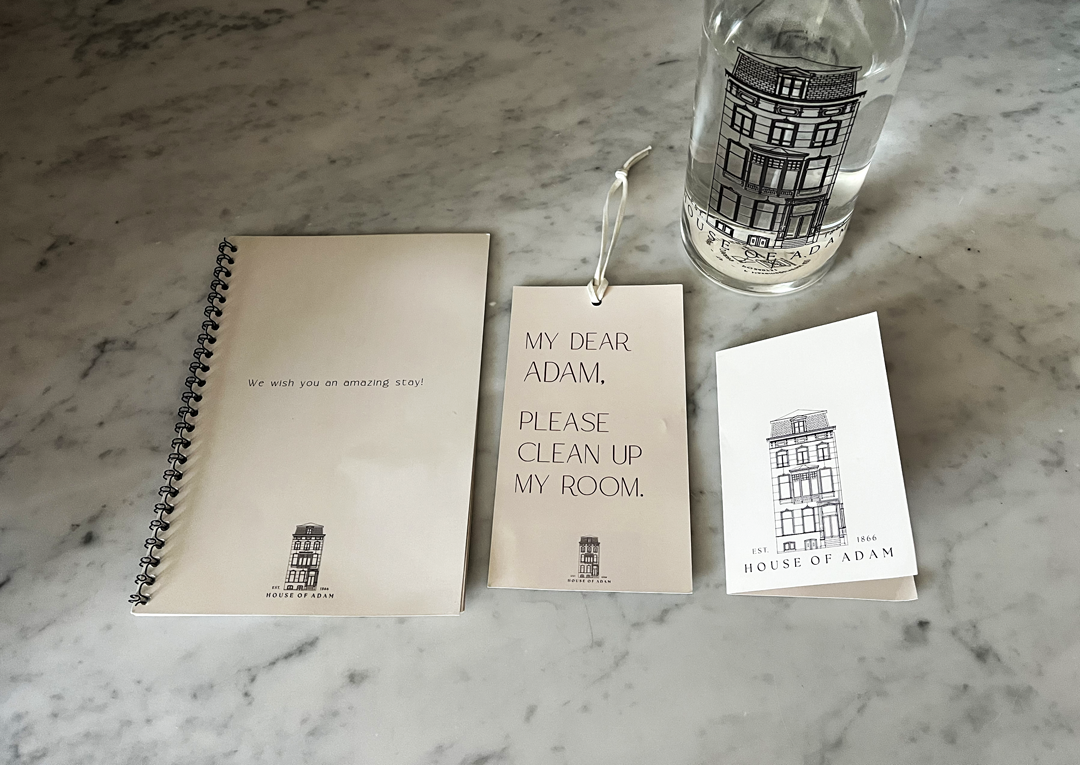 The branded touchpoints within the hotel were clean and sort of sophisticated. A neat illustration of the typically dutch townhouse adorned most branded touch points and there were some nods to Adam throughout. Namely, the door hanger to let Adam know if he was welcome to enter to service the room, or not. Perhaps somewhat controversially though, spiral binding should be reserved for academic documents not hotel stay guides.