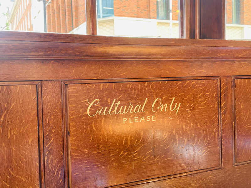 One standout feature is the stunning oak and mahogany bar, salvaged from the now-closed Bell pub in St. Paul’s. It sets the tone for a space that doesn’t just serve food and drink; it tells stories. Even the windows and furnishings echo this attention to heritage, many lovingly reclaimed or reimagined from earlier uses. The bar’s beautiful hand-painted signage by Peter Hardwicke, perhaps London’s last traditional sign writer, lends an authentic and nostalgic touch.