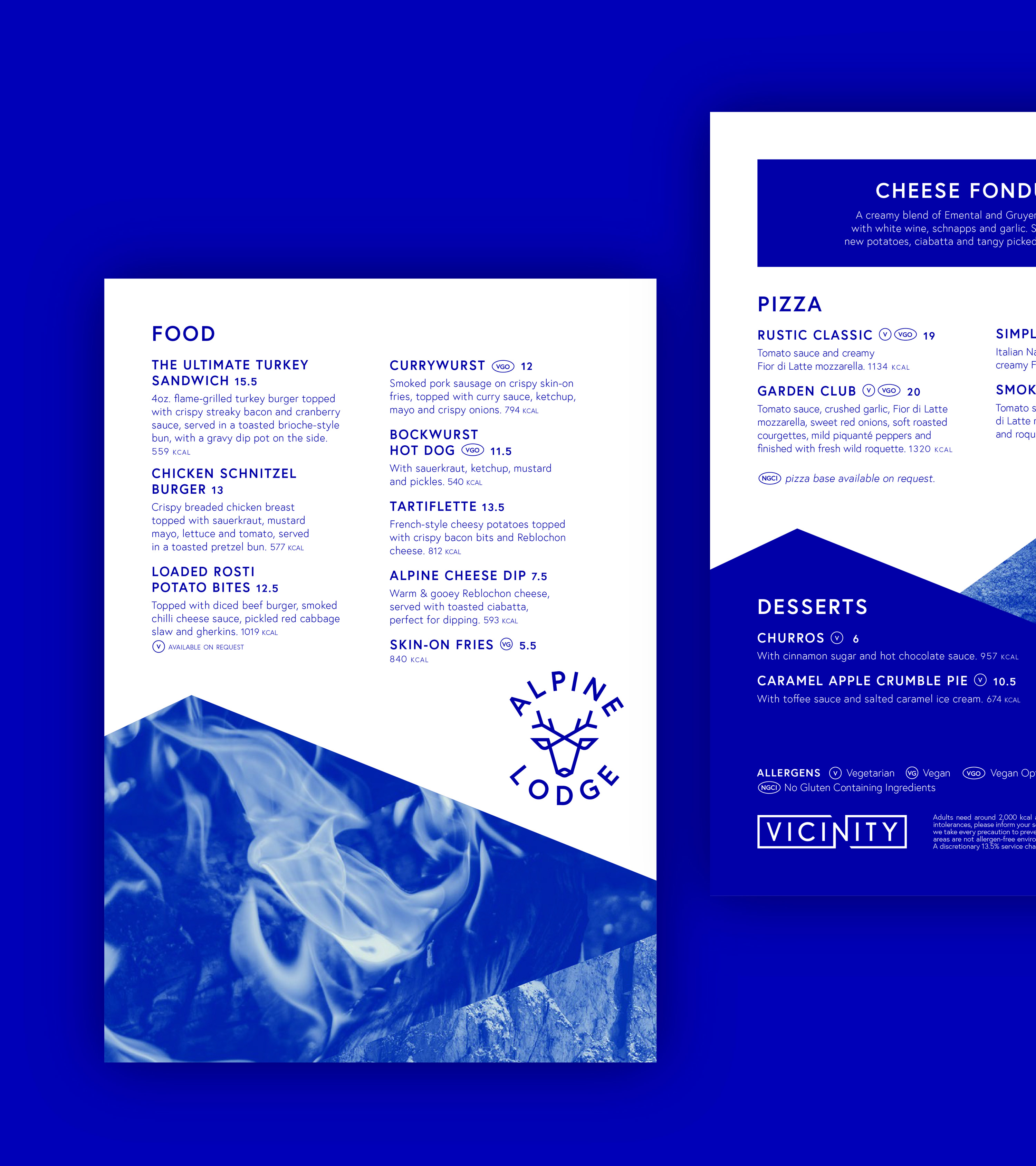 The outcome is a vibrant, contemporary reinterpretation of an alpine lodge and one that feels fresh and unmistakably seasonal. The disciplined use of electric blue ties every asset together, from advertising to signage, helping the venue stand apart from traditional lodge imagery while maintaining recognisable links to Vicinity’s brand DNA. The refined logo, modular icon set and layered visual textures create an identity that is both expressive and strategically aligned. What emerged is not just a winter pop-up, but a fully realised visual identity that resonates with both new and returning visitors.