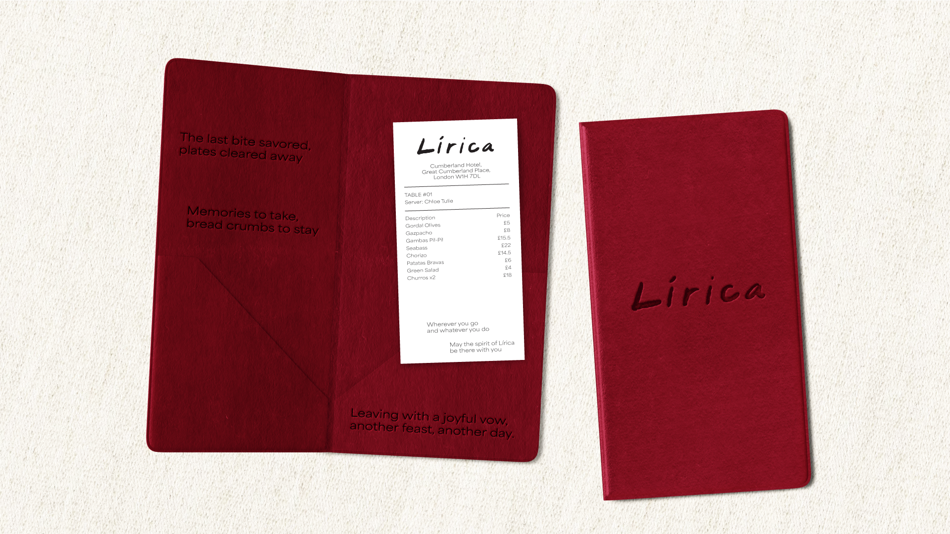 We developed Lírica: a confident, lyrical brand inspired by Mediterranean rhythm and The Cumberland’s musical heritage. Starting with naming, narrative and tone of voice, we crafted a concept that feels warm, poetic and relaxed, using subtle references to music and verse to elevate the experience without overwhelming it.